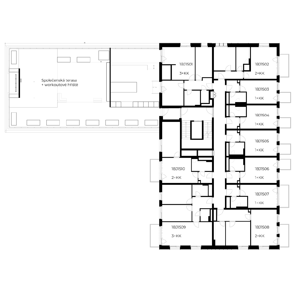 - Byt č. 1503, plocha: 27 m2, dispozice: 1+kk, cena: prodáno