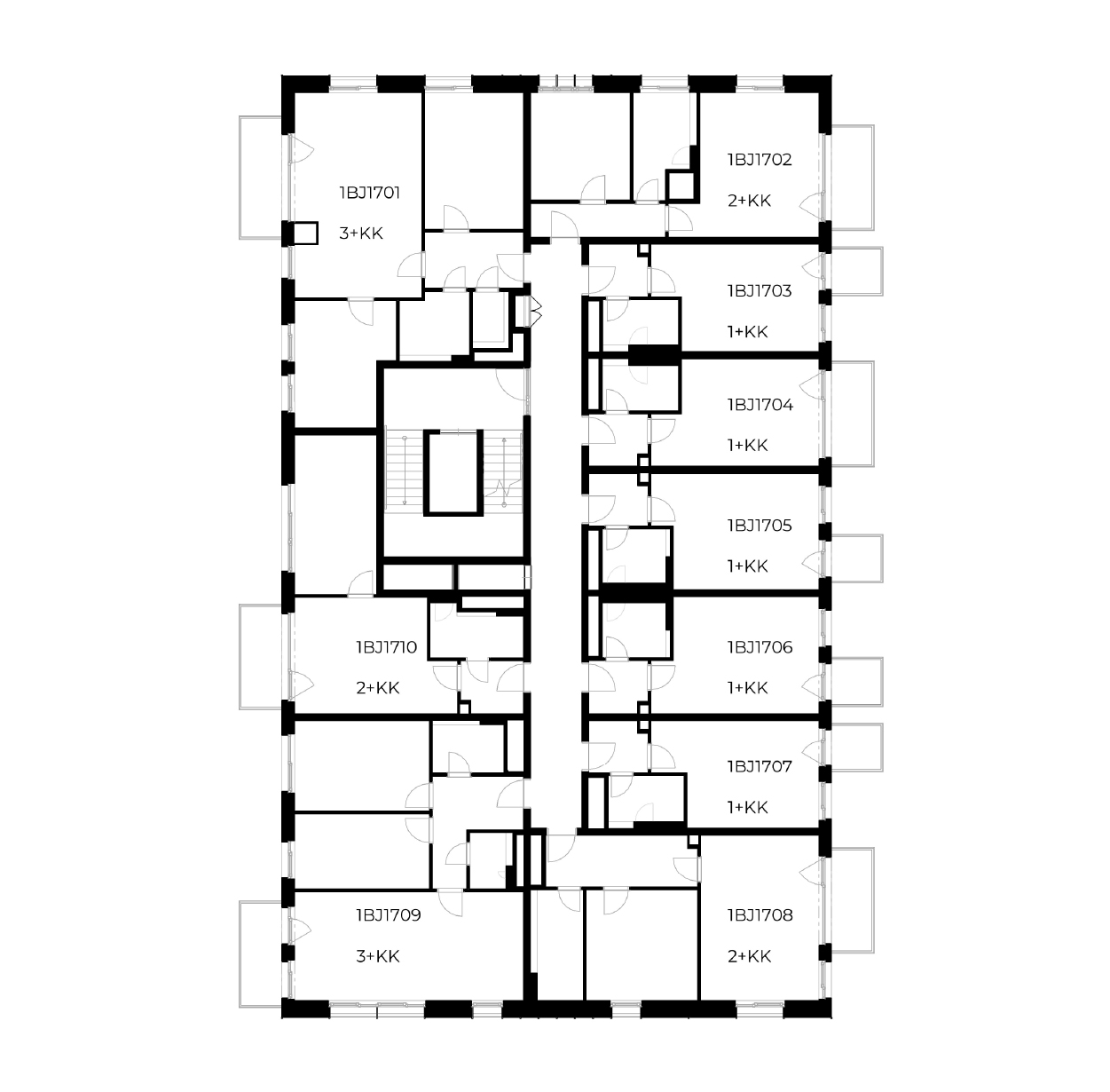 - Byt č. 1701, plocha: 73.5 m2, dispozice: 3+kk, cena: 9 988 000 Kč , detail jednotky