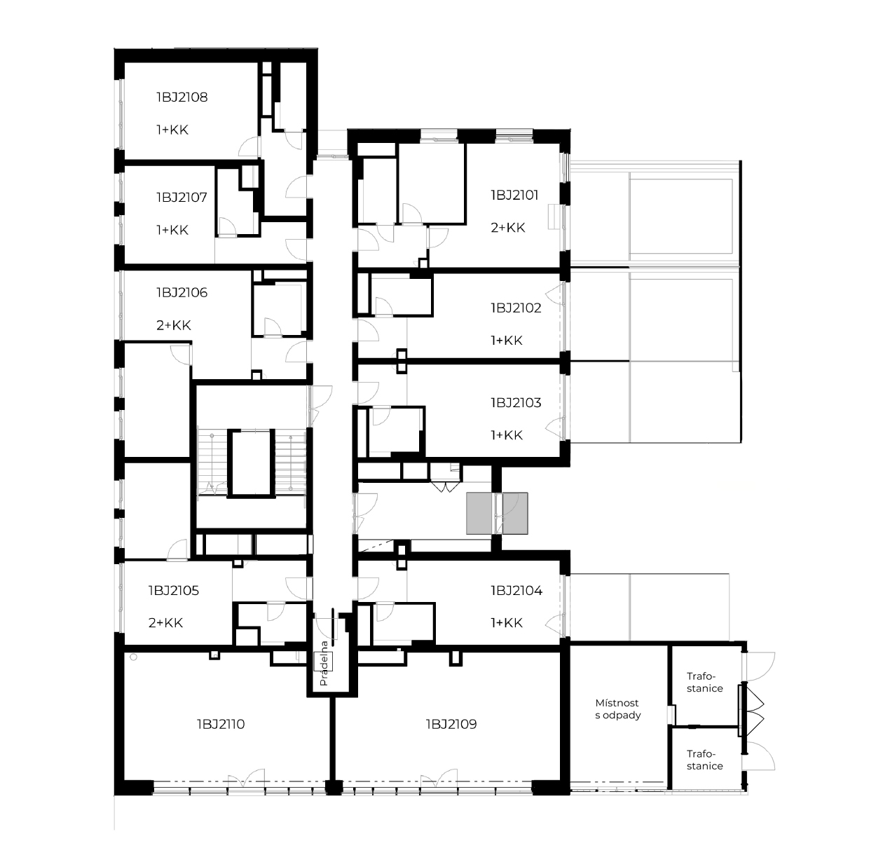 - Byt č. 1102, plocha: 22.5 m2, dispozice: 1+kk, cena: v přípravě , detail jednotky